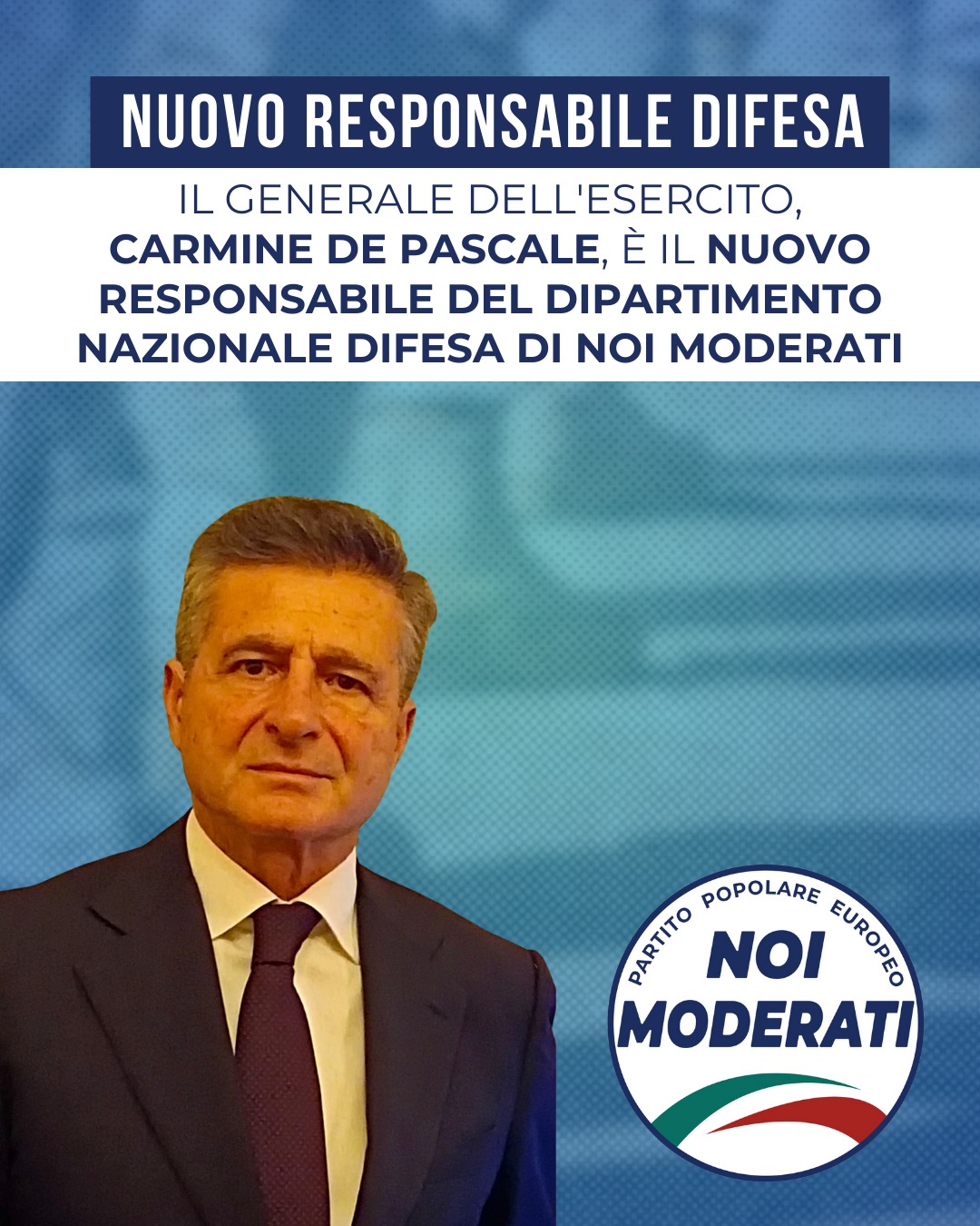 Il generale dell’Esercito Carmine De Pascale è il nuovo responsabile del dipartimento nazionale Difesa di Noi moderati.