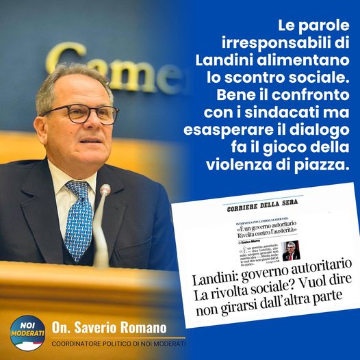 On.Romano: “le parole di Landini alimentano lo scontro sociale”
